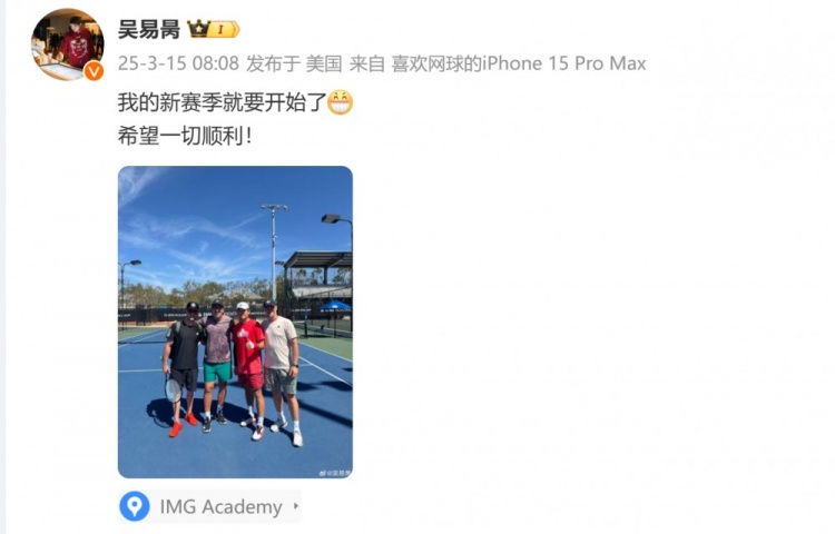 吴易昺发社媒为新赛季预热,吴艳妮留言:肯定会顺顺利利的