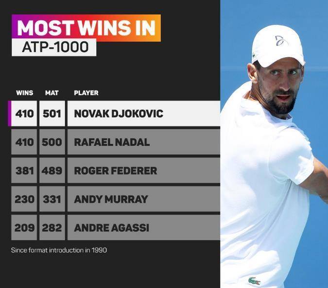 本场比赛取得胜利的德约科维奇,以410场大师赛胜场追平了自己的老对手纳达尔,并列成为了在大师赛获胜场次最多的球员。同时这是德约的第501场大师赛比赛,超越了500场的纳达尔,成为了在大师赛参赛场次最多的球员。